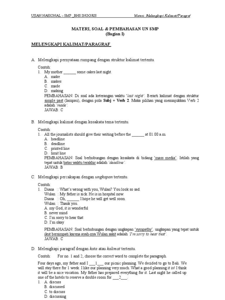 Soal latihan unbk smp bahasa inggris 2019 beserta pembahasannya. Kumpulan soal mengurutkan kalimat acak menjadi paragraf yang padu dalam bentuk. Contoh soal kelas vii menyusun teks deskripsi acak. Contoh soal dan pembahasan bahasa inggris smpmts read the . Guru sd smp sma soal kalimat acak bahasa inggris kelas 10.